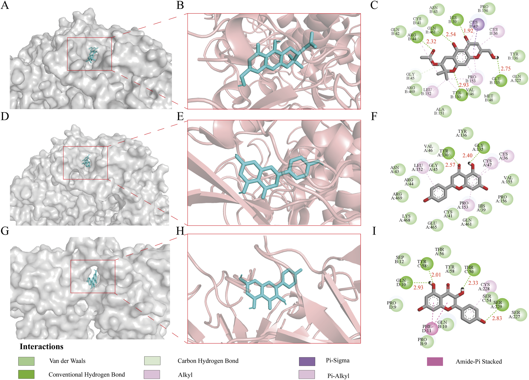 Molecular docking was utilized to confirm essential targets identified through network pharmacology and to predict the binding locations and affinities between ligands and protein targets [12, 13]. Small-molecule ligands were acquired from the TCMSP or PubChem databases8 in MOL2 format. Protein crystal structures were acquired from the RCSB Protein Data Bank9 in PDB format [14]. Water molecules and existing ligands were eliminated via PyMOL, and the proteins were prepared with AutoDock Tools 1.5.7, which included hydrogenation and conversion to PDBQT format. Ligands were also hydrogenated and ionized prior to docking.