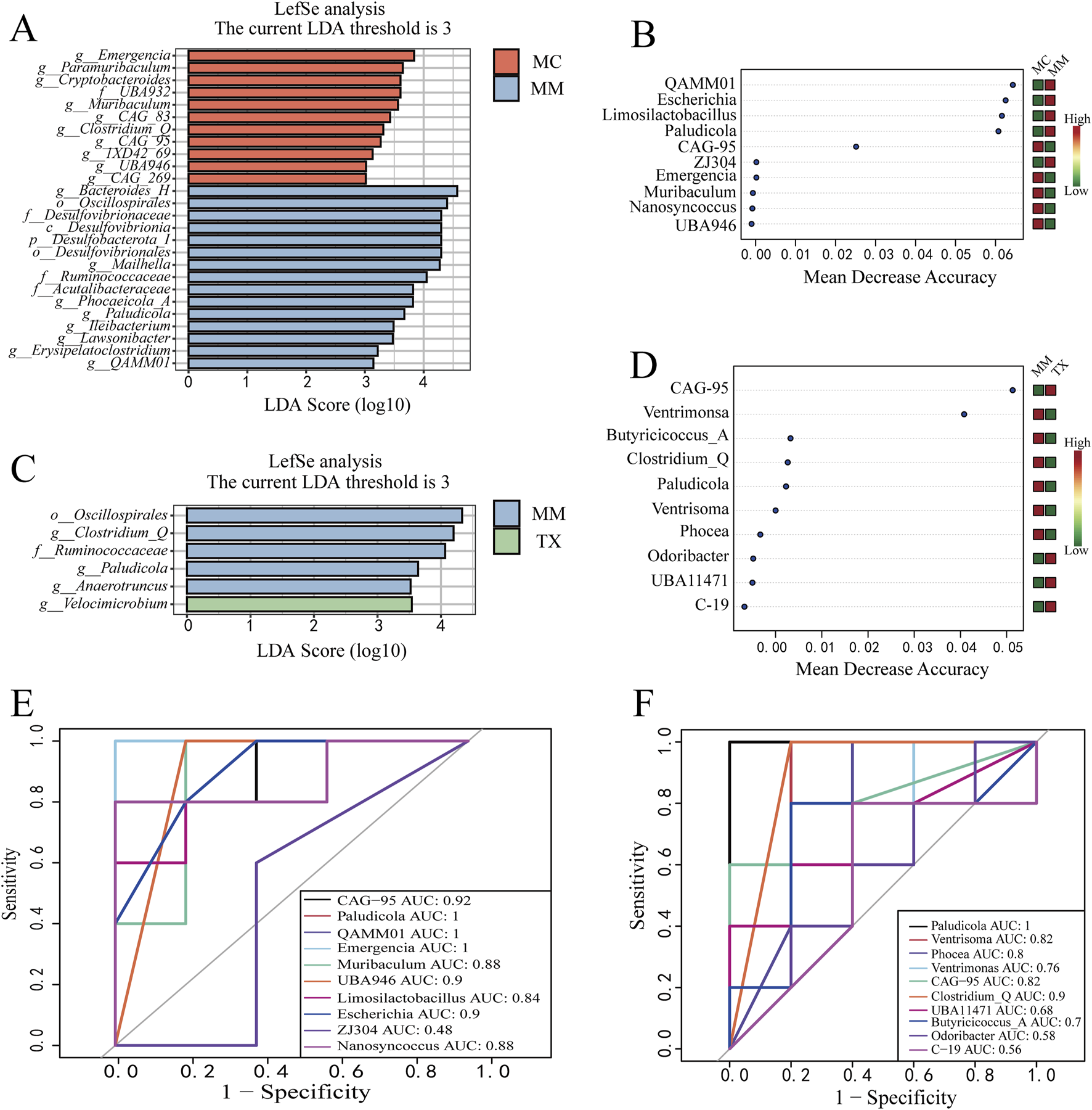 (4) Species differences and marker species analysis [29]: LEfSe and random forest analyses were used to identify differentially abundant taxa and microbial biomarkers via QIIME2 (2019.4), Python, and R (ggtree).
