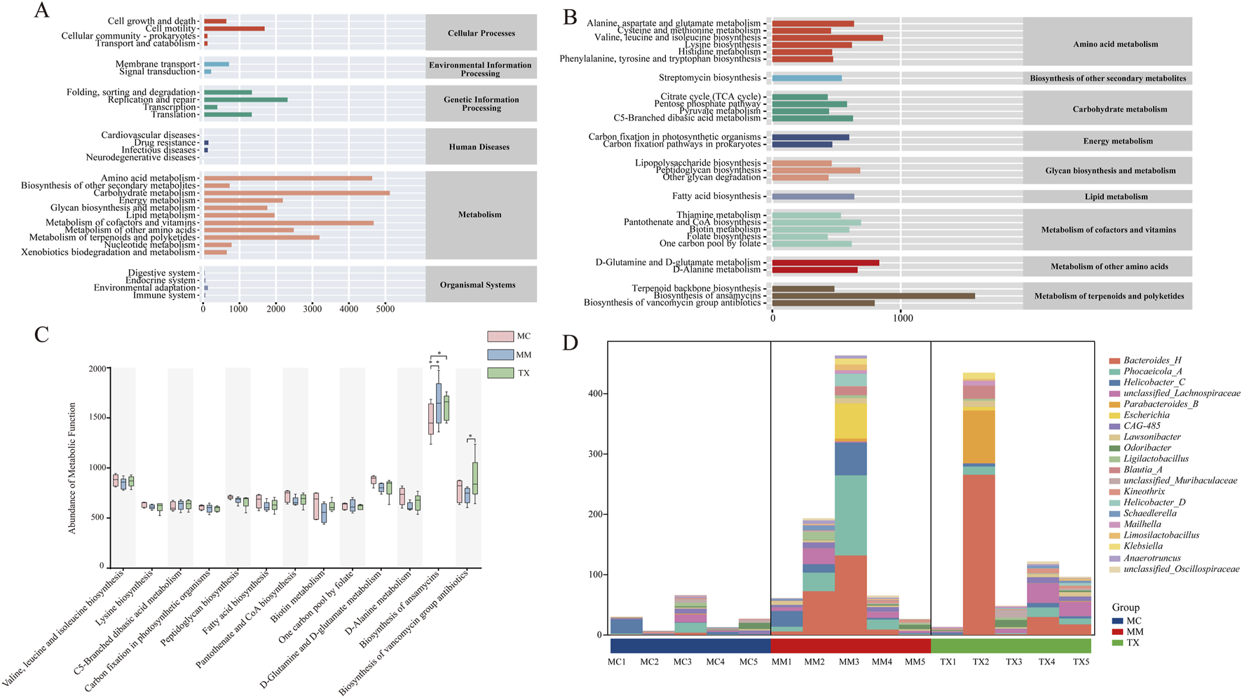 (5) Functional prediction analysis: PICRUSt2 was used to predict the 16S rRNA gene sequence in the KEGG functional database13, and the primary, secondary, and tertiary functional abundances of the samples were determined.