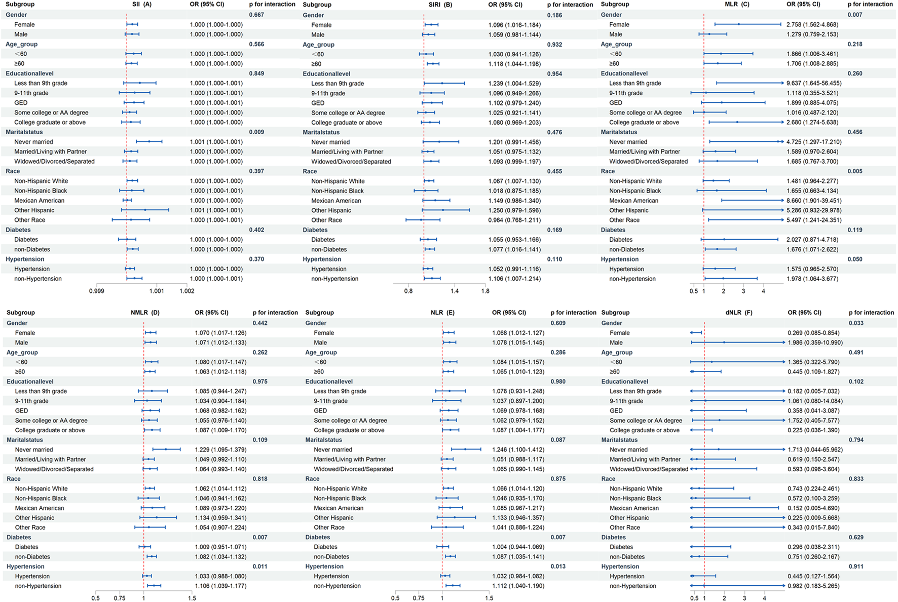 BMI, body mass index; SII, Systemic Immune - Inflammation Index; SIRI, Systemic Inflammation Response Index; MLR, Monocyte - to - Lymphocyte Ratio; NMLR, (Neutrophil + Monocyte) - to - Lymphocyte Ratio; NLR, Neutrophil - to - Lymphocyte Ratio; dNLR, Derived Neutrophil - to - Lymphocyte Ratio; PLR, Platelet - to - Lymphocyte Ratio.