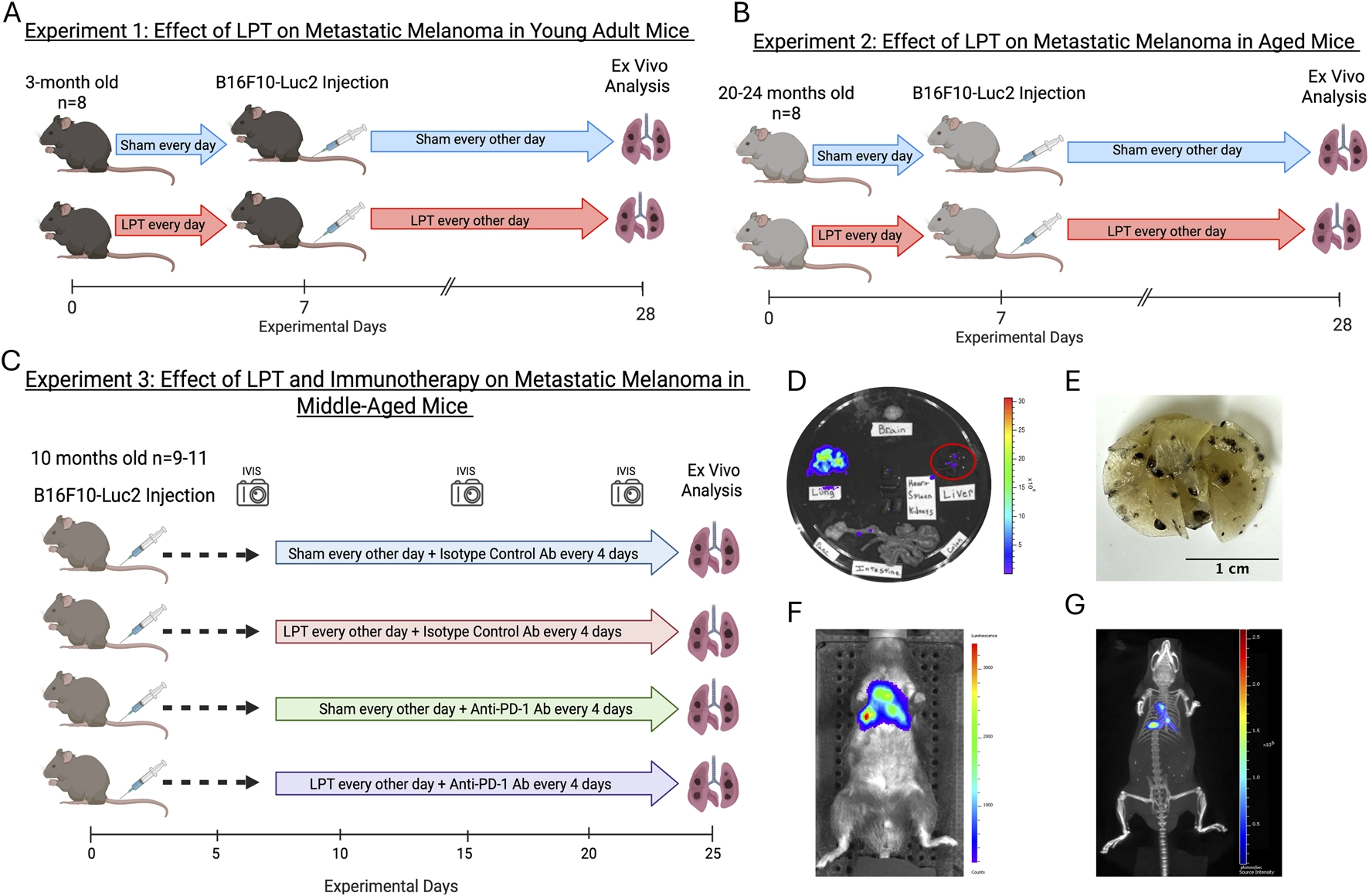 LPT reduced tumor burden in middle-aged mice but did not enhance immunotherapy